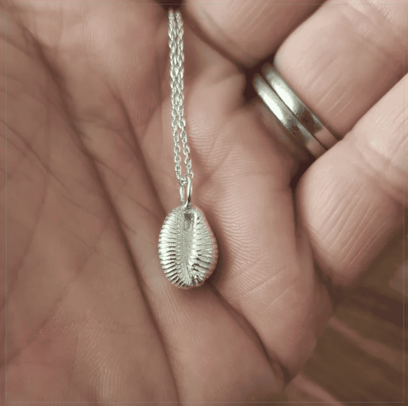 Tiny cowrie shells found hidden in the shingle on Islay beaches are sand-cast in solid sterling silver. Each shell measures approximately 8mm and captures the beautiful natural pattern. Handmade by CH Jewellery in their island workshop.